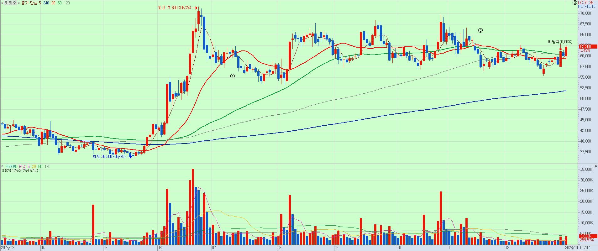 카카오: ‘이평선 확장’ + ‘주봉 마디 상승’ 본격화