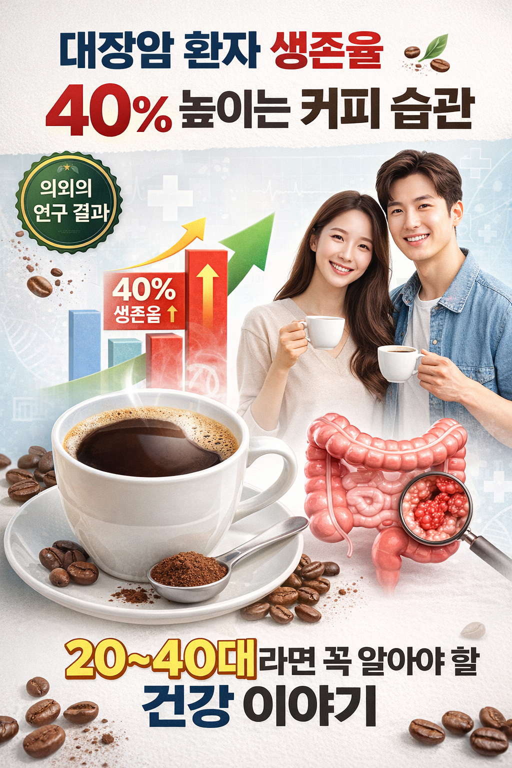 최근 의학계에서 발표된 **‘대장암 환자가 매일 커피를 마시면 사망 위험이 40% 이상 낮아진다’**는 연구 결과, 저도 접하고 눈이 번쩍 뜨였습니다. 평소 우리가 습관처럼 마시는 커피 한 잔이 암세포의 재발을 막고 생존의 열쇠가 될 수 있다는 사실이 참 놀랍더군요. ☕️